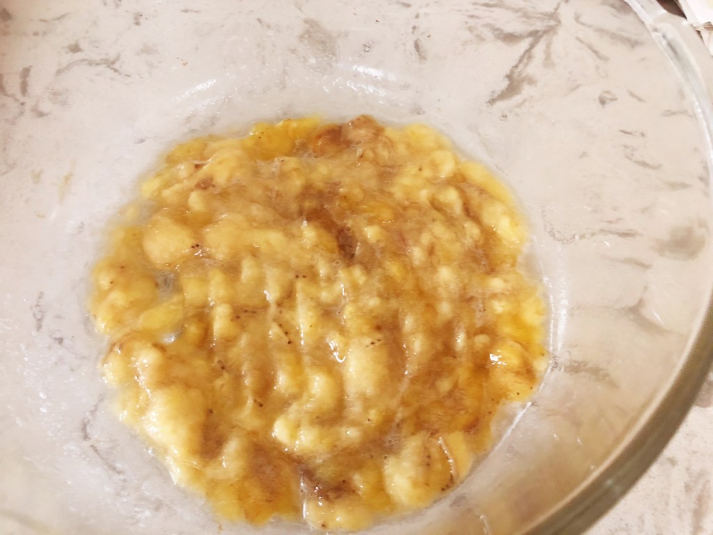 - Mash the bananas in a bowl.