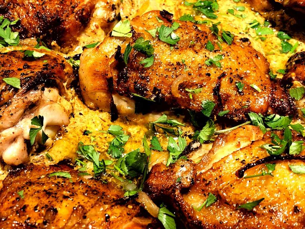 For the original recipe go to https://www.foodnetwork.com/recipes/ina-garten/chicken-thighs-with-creamy-mustard-sauce-5468298